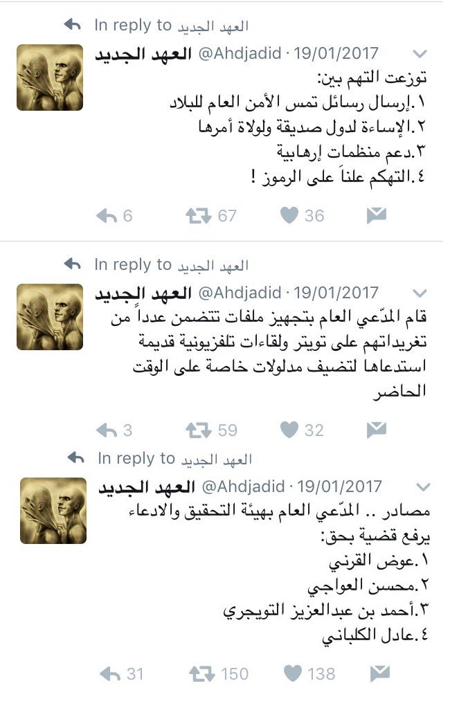 Uzivatel العهد الجديد Na Twitteru مصداقا لكلام العهد الجديد قبل شهرين المدعي العام يرفع قضايا ضد أربعة رموز اجتماعية والتهم الإساءة لدول صديقة ودعم منظمات إرهابية Https T Co Sn9j8omase