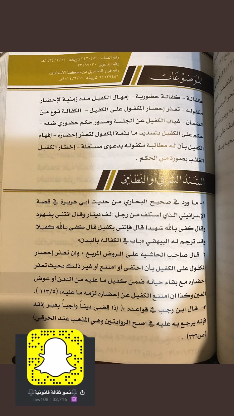 نحو ثقافة قانونية בטוויטר كفل شخص كفالة حضورية في دين قيمته ١٢٦ ألف ريال ولم يستطع إحضاره فحكم عليه القاضي بدفع الدين تتحول الكفالة الحضورية إلى غ رمية في حال عجز الكفيل عن
